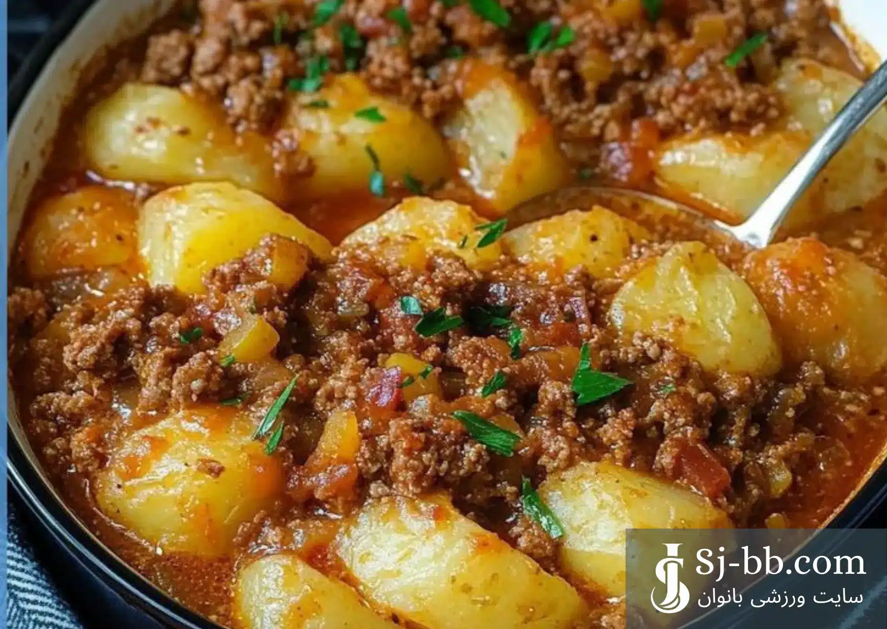 - آن را بر روی گوشت چرخکرده و سیب زمینیها بریزید و بر روی حرارت قرار میدهید.
